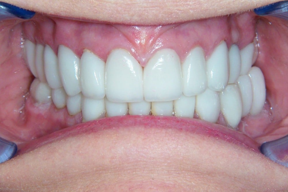 Full Mouth ReconstructionDental CrownsImplantsVeneersCompleted a full mouth reconstruction with dental crowns and veneers, and replaced missing teeth on upper left side with implants.BeforeAfterPreviousNext