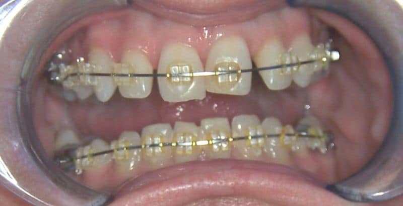 A patient's smile after having undergone neuromuscular bite correction and orthodontics.