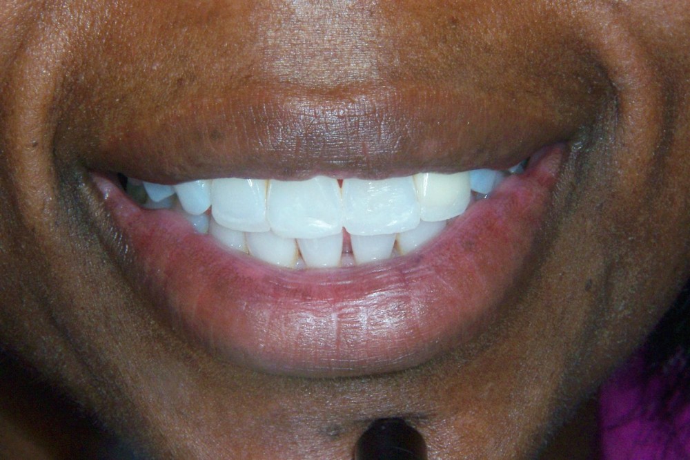 Smile enhancements completed by using veneers and dental crowns.